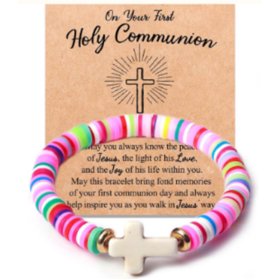 Bracelet: First Holy Communion colourful with cross