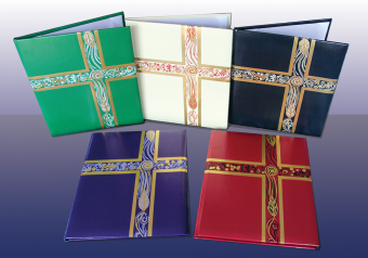These attractive and useful Ceremonial Folders feature an exquisite two-tone stamped cross design with gold foil. Each fabric-lined folder holds one or two single sheets of 8½" x 11" paper that you can easily tuck into the grosgrain ribbon corner holders. Ideal for use by lectors (with intercessions placed on one side and parish announcements placed on the other), by priests and deacons, and by cantors (to hold the psalm). Consider having brides and grooms use at weddings to hold their vows, or use as a presentation folder for special awards or appreciation certificates.