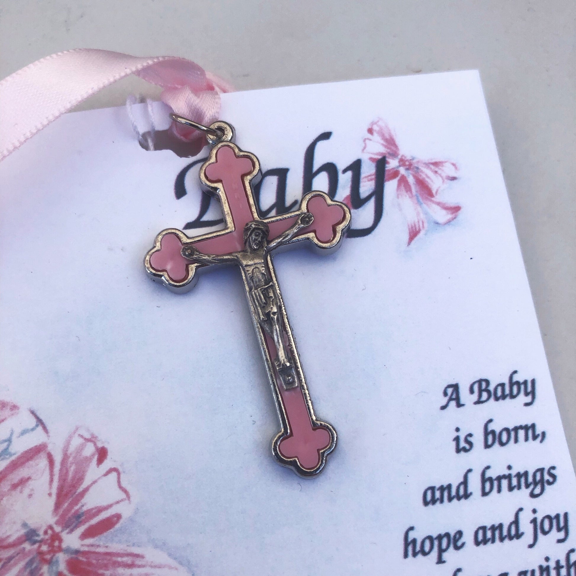 Baby Crucifix on Card – (5cm x 3cm) Nickel N& Enamel – Designed and Made in Italy