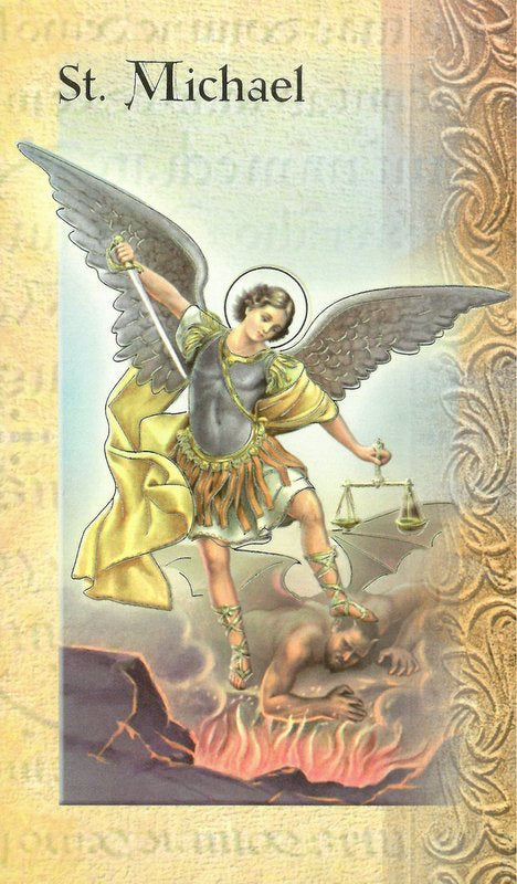 This "Mini Lives of the Saints" prayer card offers readers an artistically crafted, informative reference into the life of St. Michael.