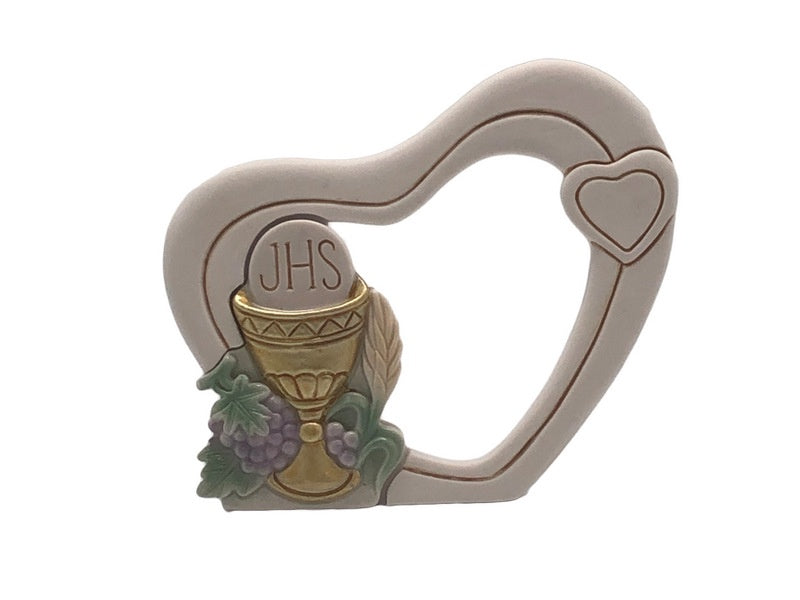 Freestanding First Holy Communion Heart Shaped Plaque.