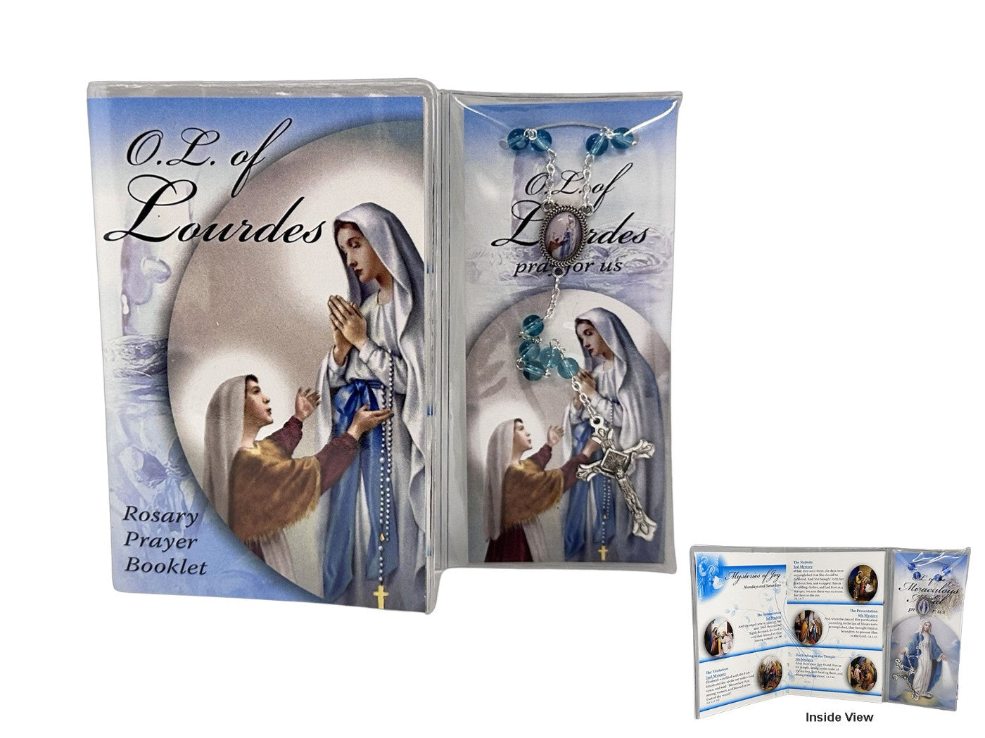 Rosary: Glass Beads with Our Lady of Lourdes Prayer Book