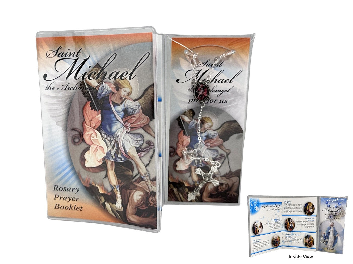 It features a lovely glass bead rosary with a silver Crucifix and a St Michael centrepiece. Also included is a small booklet with instructions on how to pray the Rosary, making it a beautiful gift for any special occasion.