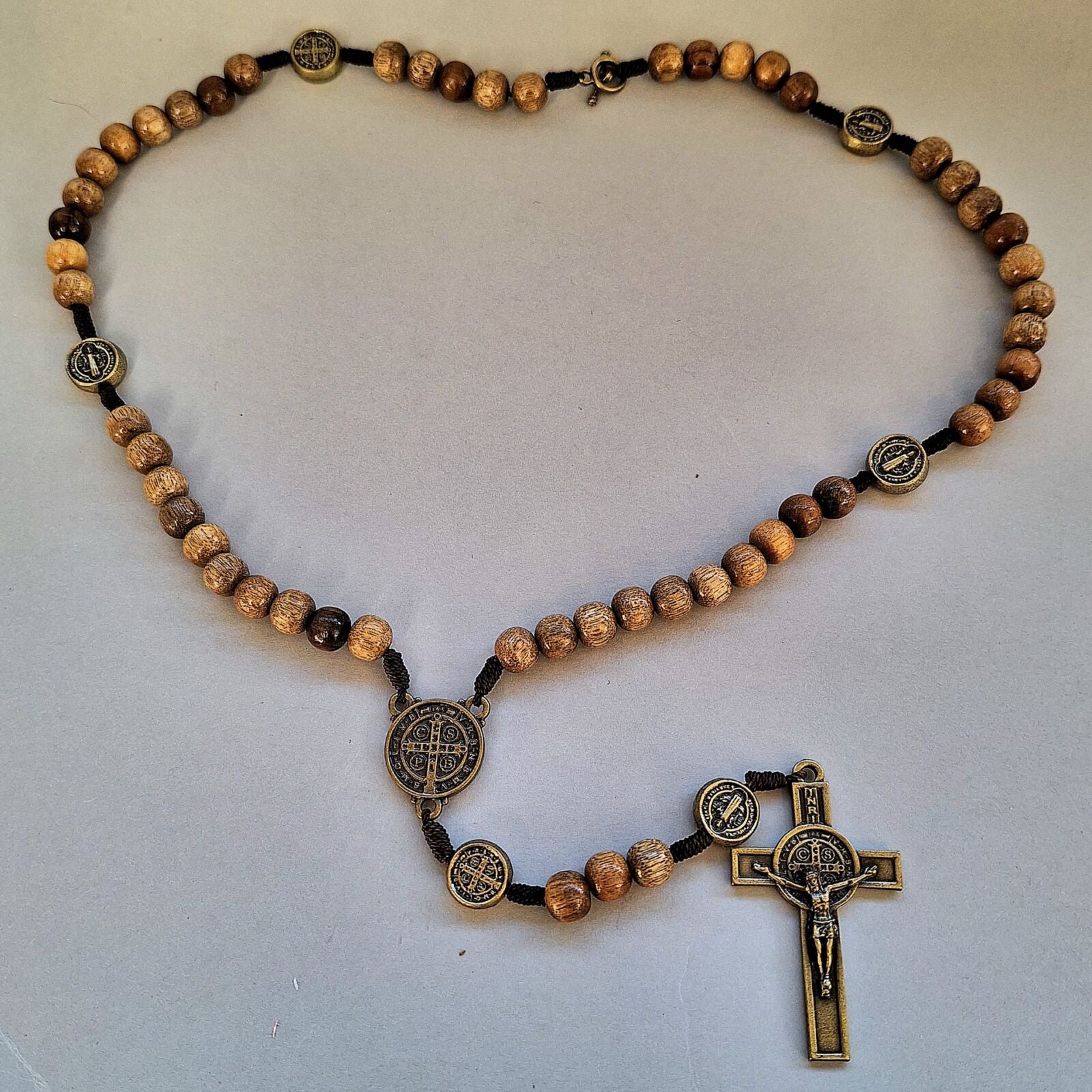 This beautiful, Brazilian wooden St Benedict Rosary is quite an eye-catcher.