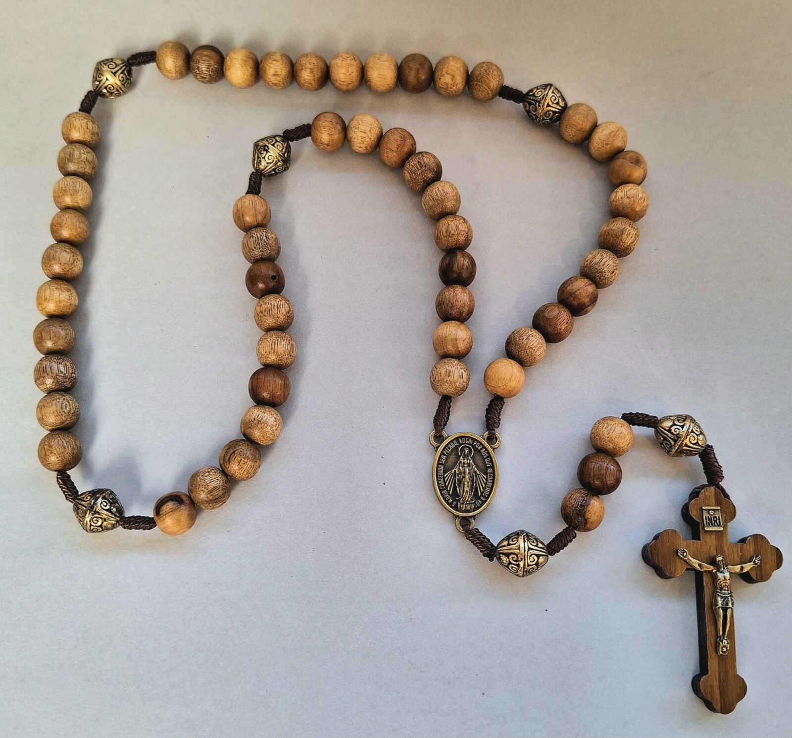 A lovely ornate wooden Crucifix. Beads are made from Brazilian Walnut ( Imbuia)